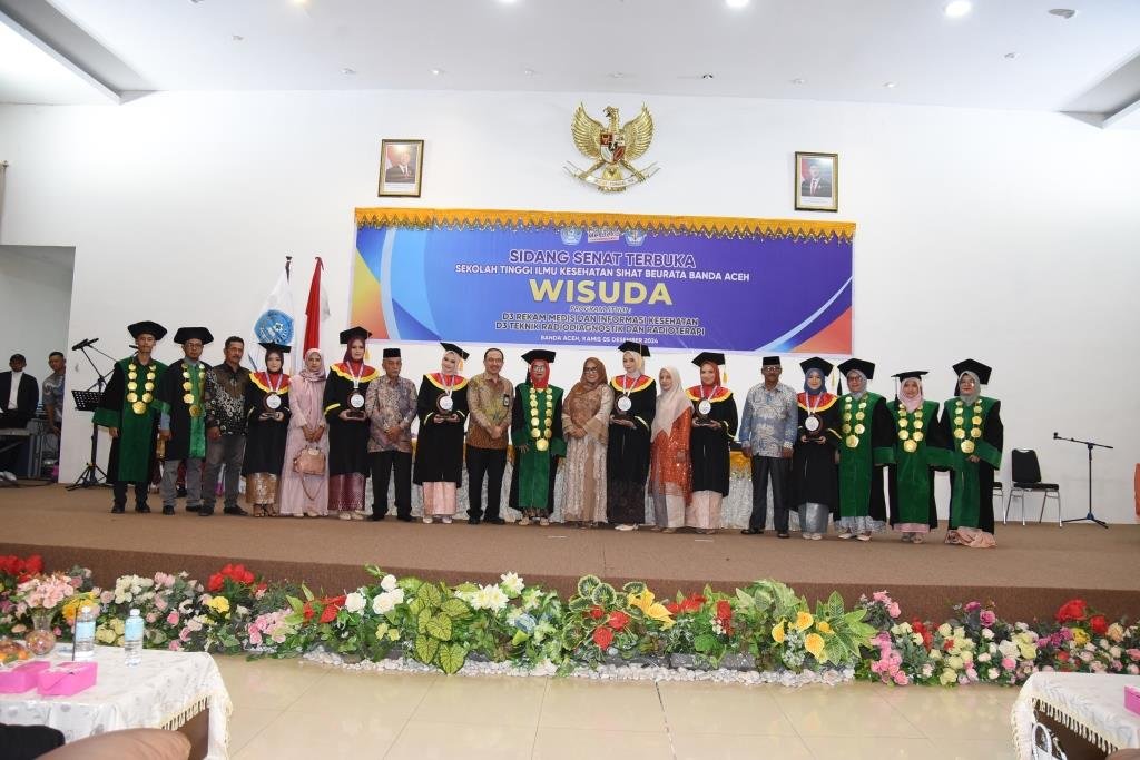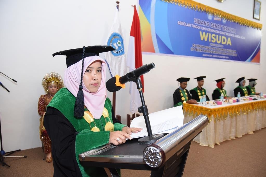 Sebanyak 83 wisudawan dan wisudawati berhasil menyelesaikan masa studi selama tiga tahun dengan prestasi yang membanggakan. Ketua STIKes Sihat Beurata Banda Aceh, dalam pidatonya, menyampaikan rasa syukur atas pencapaian ini serta mengapresiasi seluruh pihak yang telah mendukung proses pendidikan, termasuk institusi lahan praktik, organisasi profesi seperti PORMIKI dan PARI, serta seluruh staf dan dosen STIKes Sihat Beurata Banda Aceh.